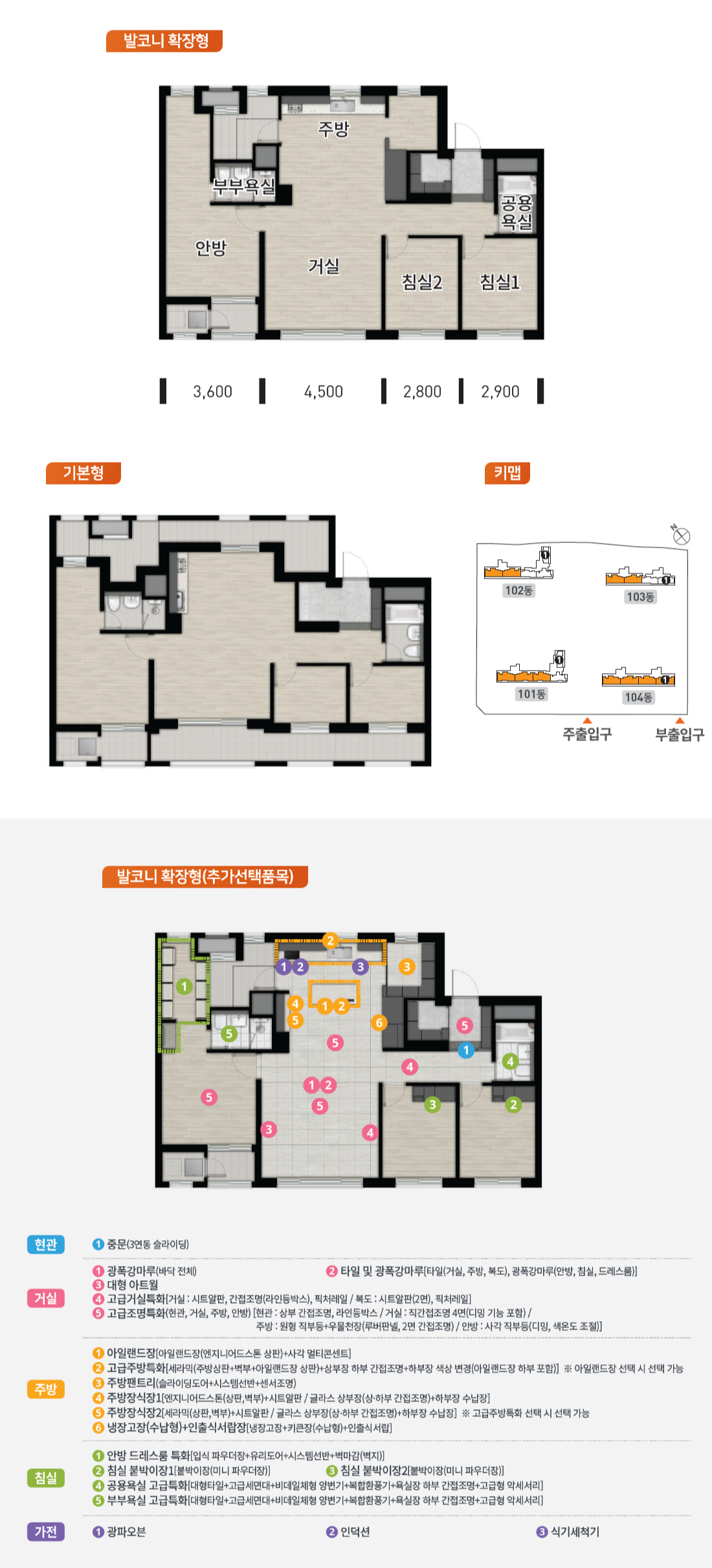 - 59㎡ B: 2베드룸, 1욕실, 알파룸 추가, 수납 강화. 다자녀 가구 고려.