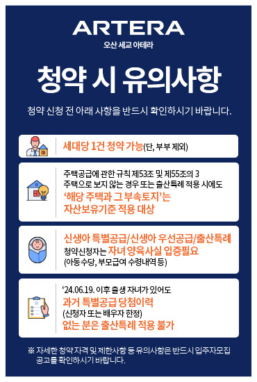 청약 자격은 2025년 5월 30일 기준 수도권(서울, 인천, 경기) 거주, 성년인 무주택 세대구성원(1세대 1주택 기준)이에요. 오산시 1년 이상 거주자는 지역우선 공급 혜택을 받죠. 신혼부부, 생애최초, 다자녀, 노부모부양, 신생아, 국가유공자 등 특별공급도 가능합니다. 단, 중복 청약(1인 1건 초과) 시 모두 부적격 처리되고, 재당첨 제한(10년), 전매 제한(3년)이 적용돼요. 공고문과 홈페이지를 꼭 확인하세요!